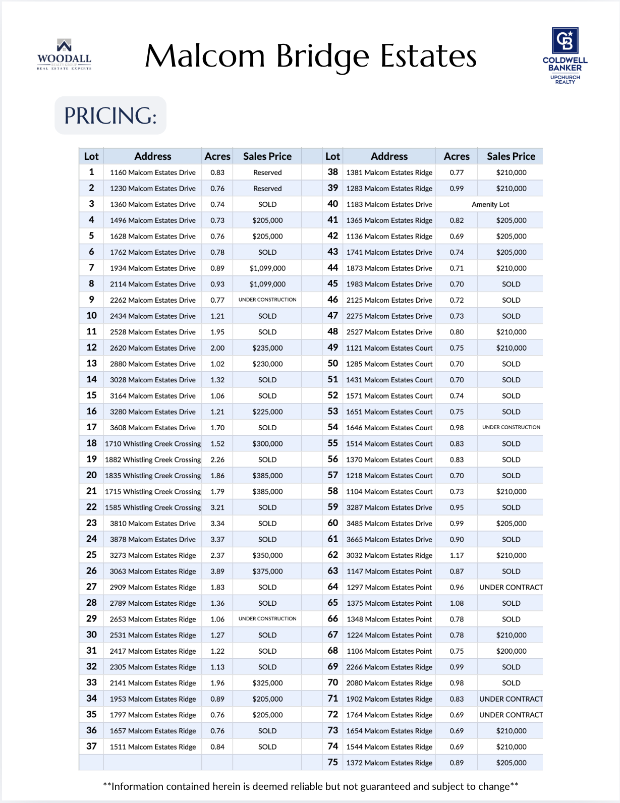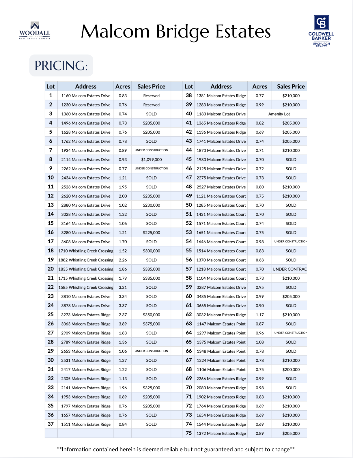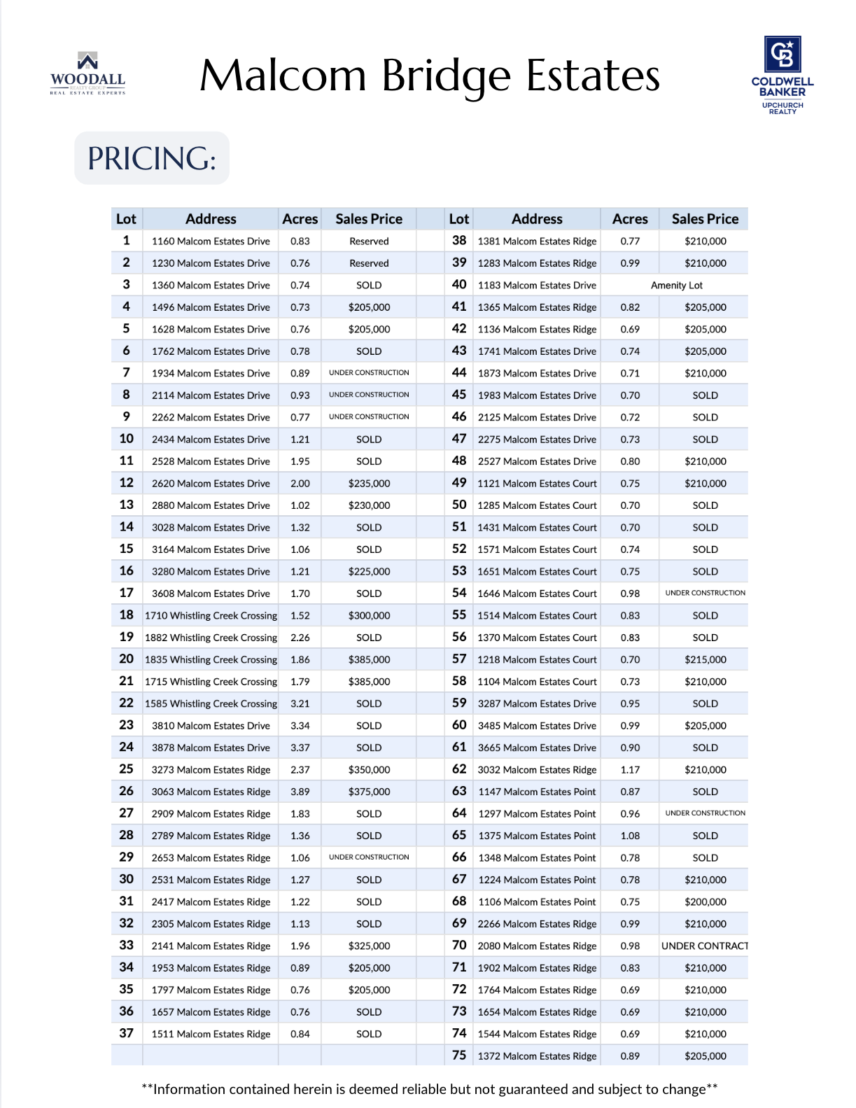 Malcom Bridge Estates is comprised of 74 lots on 99+ acres of rolling hills with many lots having beautiful creek frontage. Located in the heart of Oconee County with convenient access to Highway 316 and Epps Bridge, you can’t beat the location! The subdivision is zoned for North Oconee High School, Malcom Bridge Middle School and Malcom Bridge Elementary School.
